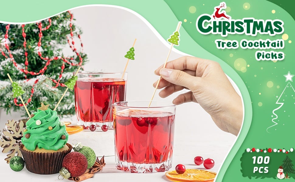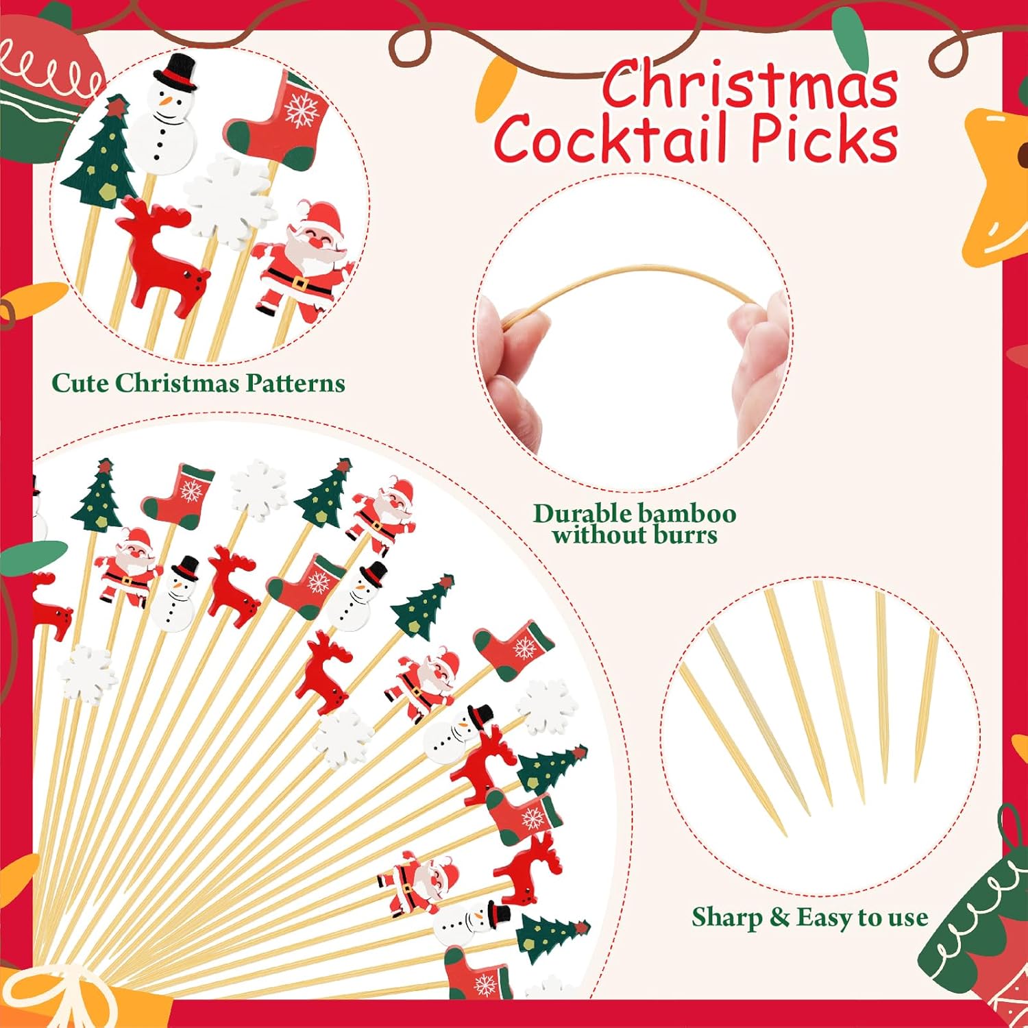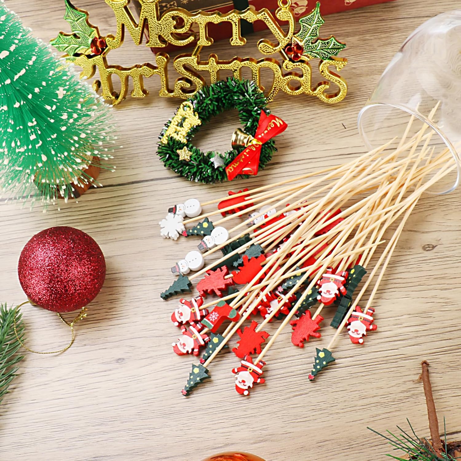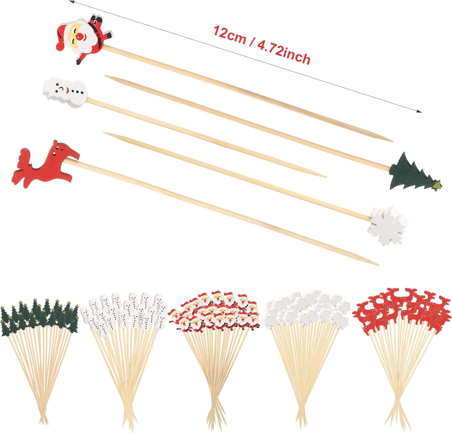 🍸️100 pieces of Christmas cocktail picks toothpick skewer decoration🍓