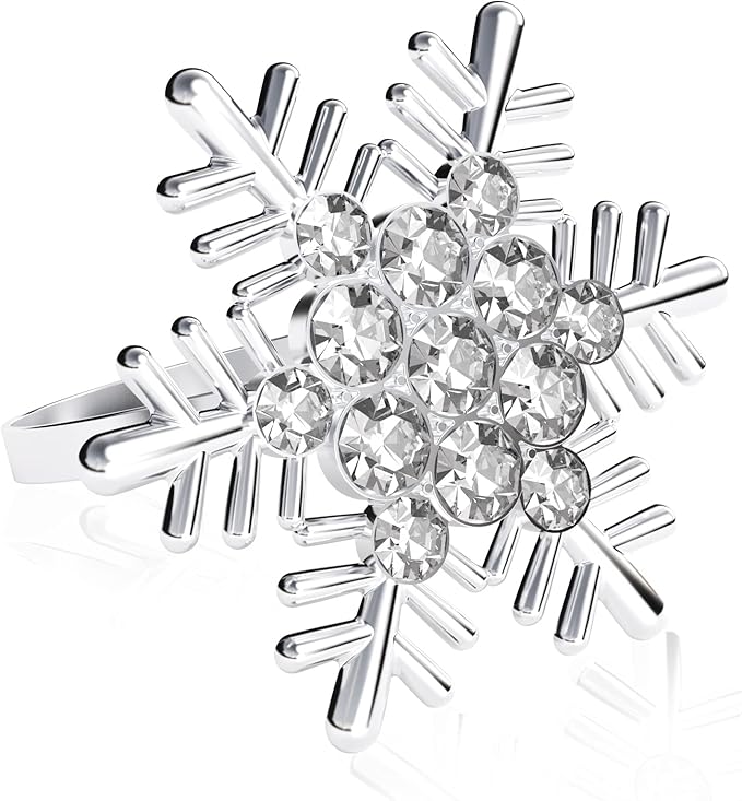 The centerpiece of our napkin rings is the exquisite snowflake design, which captures the spirit of Christmas in every delicate detail. Crafted with precision, each snowflake features sparkling rhinestones that glisten like fresh snow in the winter sunlight. 🌟❄️ The light catches the rhinestones just perfectly, casting a beautiful glow across your dining table.