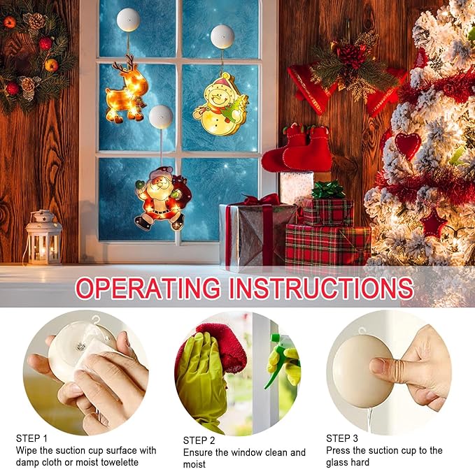 - Battery Power Supply: In order using this Christmas window light silhouette you'll need 3 AAA batteries (not included). The battery's life depends upon how it's taken care of, so be sure to check the polarity before changing it.