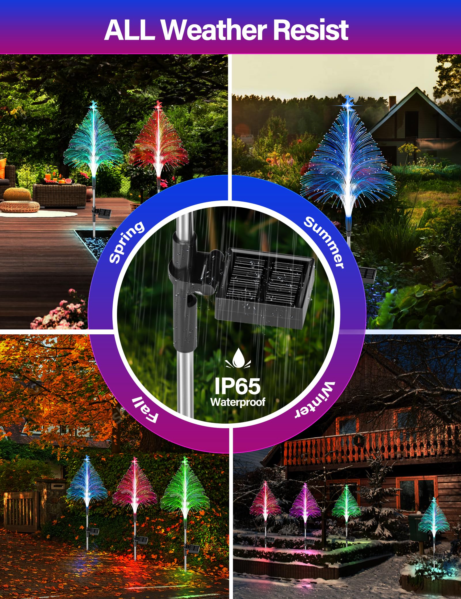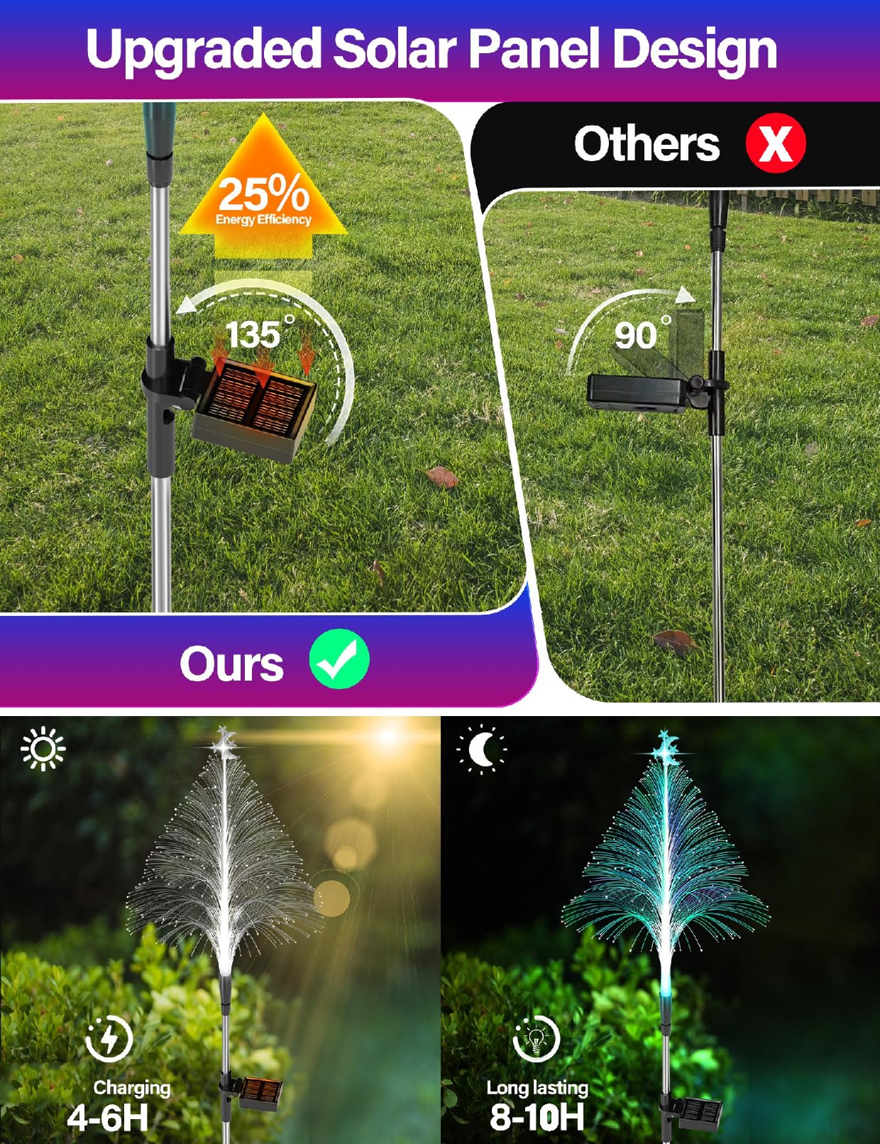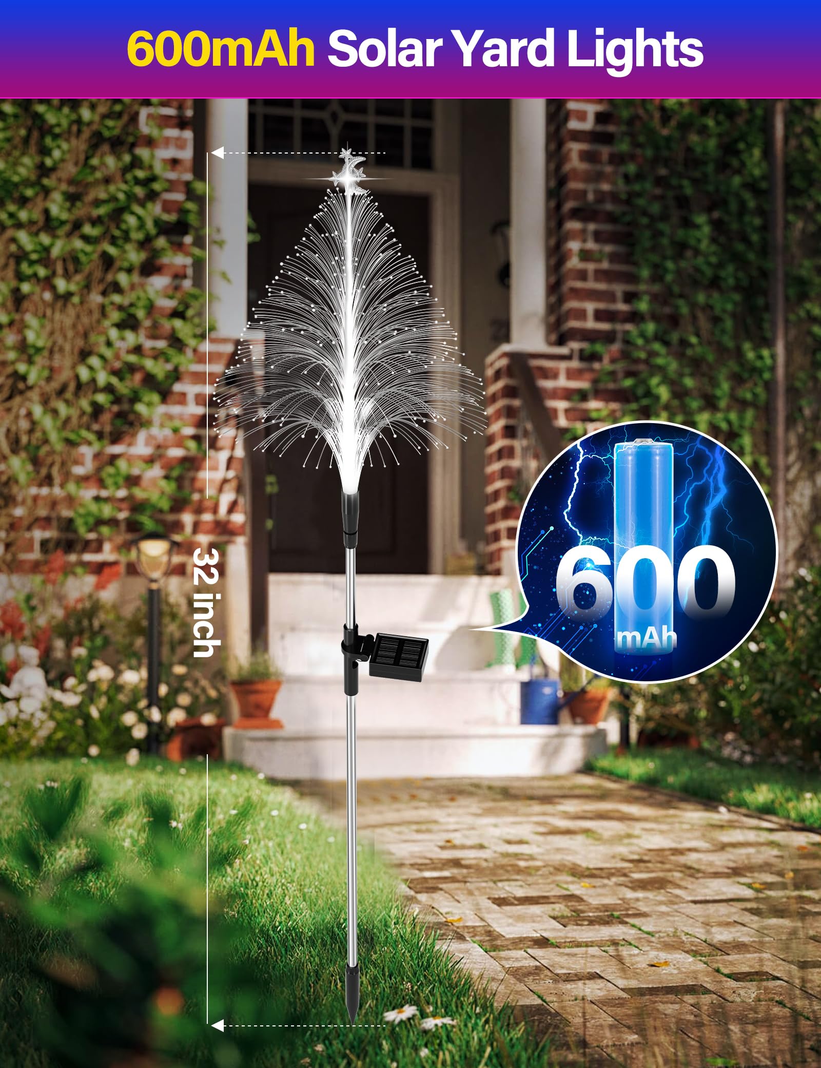 【10H Long Lasting Solar Tree】: The Christmas decorations outdoor solar lights with 600mAh powerful batteries. Charging for 4-6 hours during the day, and last for 8-10 hours at night. The solar outdoor decorative light features fast charging and long battery life. Keep your garden immersed in a colorful atmosphere all night.